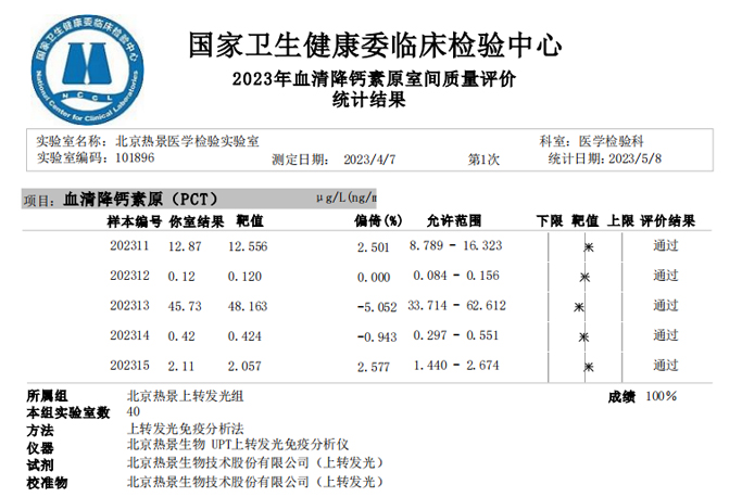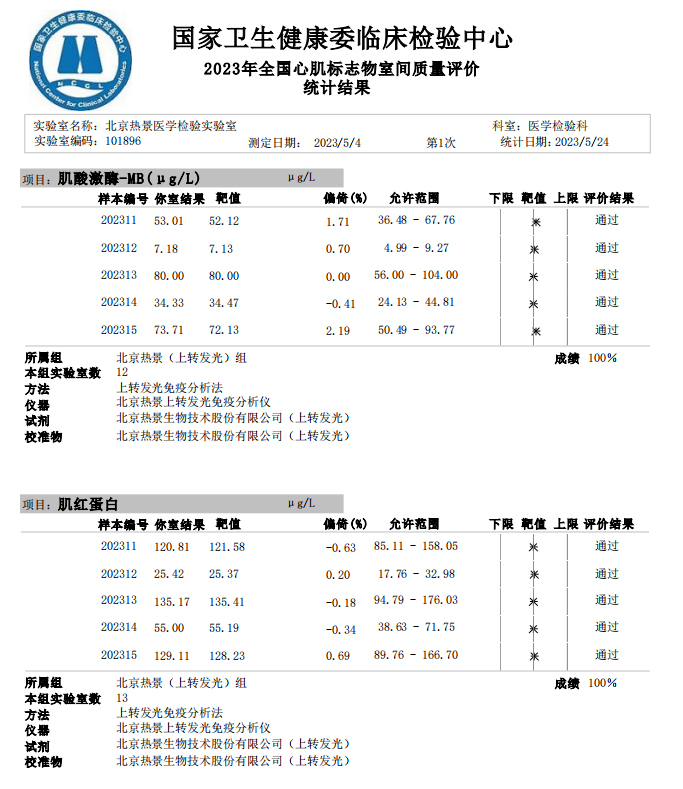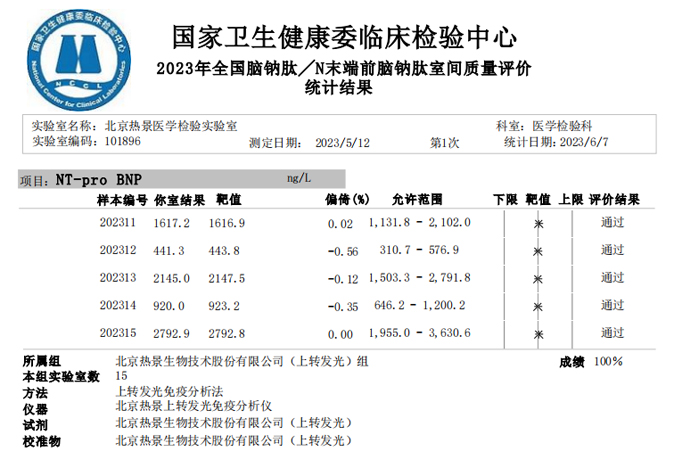 近日,國家衛(wèi)生健康委臨床檢驗(yàn)中心(NCCL)公布了2023年多項(xiàng)全國臨床檢驗(yàn)室間質(zhì)量評(píng)價(jià)結(jié)果。熱景生物旗下熱景醫(yī)學(xué)檢驗(yàn)實(shí)驗(yàn)室以100分的優(yōu)異成績通過“胃蛋白酶原”“血清降鈣素原”“N末端前腦鈉肽”“心肌標(biāo)志物”等室間質(zhì)評(píng)項(xiàng)目。同時(shí),熱景生物參與的上海市臨床檢驗(yàn)中心2023年第一次能力驗(yàn)證項(xiàng)目,包括B型鈉尿肽/N端-B型鈉尿肽前體、AFP異質(zhì)體比率、肌鈣蛋白I、降鈣素原等項(xiàng)目均通過驗(yàn)證,充分彰顯了熱景生物穩(wěn)定可靠的實(shí)驗(yàn)室質(zhì)量管理和檢測(cè)能力,以及強(qiáng)大的產(chǎn)品和技術(shù)實(shí)力!