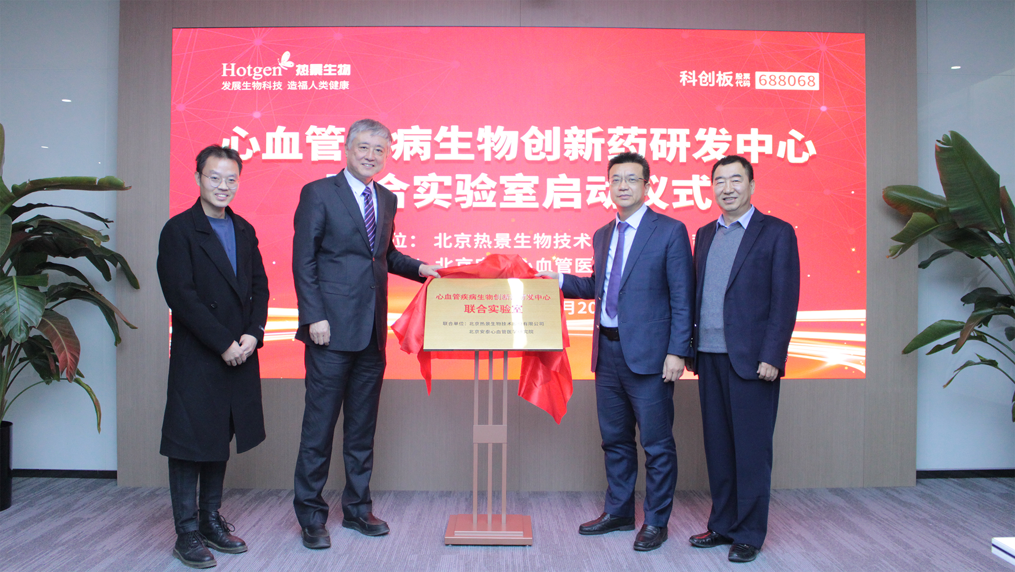2023年11月20日,北京熱景生物技術(shù)股份有限公司董事長(zhǎng)兼總裁林長(zhǎng)青先生、北京安泰心血管醫(yī)學(xué)研究院院長(zhǎng)杜杰教授、北京舜景生物醫(yī)藥技術(shù)有限公司總經(jīng)理孫志偉教授共同為“心血管疾病生物創(chuàng)新藥研發(fā)中心聯(lián)合實(shí)驗(yàn)室”揭牌,這是一場(chǎng)具有里程碑意義的啟動(dòng)儀式,標(biāo)志著熱景生物及其關(guān)聯(lián)公司在安泰心血管研究院的加持下,聚焦心血管疾病從診斷到治療的研發(fā)進(jìn)入快速發(fā)展階段。