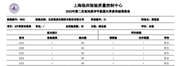 臨床檢驗(yàn)中心室間質(zhì)量評價(jià)的結(jié)果可以反映出實(shí)驗(yàn)室管理水平和檢測結(jié)果的準(zhǔn)確性、可靠性和穩(wěn)定性,而準(zhǔn)確可靠的檢測結(jié)果對患者的疾病診斷、治療和預(yù)后判斷都會(huì)產(chǎn)生直接影響。此次國家衛(wèi)生健康委臨床檢驗(yàn)中心和上海臨床檢驗(yàn)中心組織的室間質(zhì)評活動(dòng)均通過質(zhì)量評價(jià),充分彰顯了熱景生物強(qiáng)大的產(chǎn)品以及技術(shù)實(shí)力。